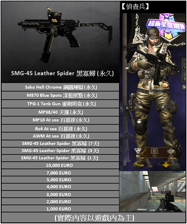 【SMG-45 Leather Spider 黑寡婦 ★ 轉蛋】(金幣點數)