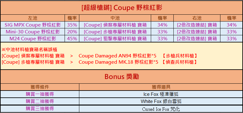 Special商店轉蛋【[超級槍鏘] Coupe 野棕紅影】(金幣點數)
