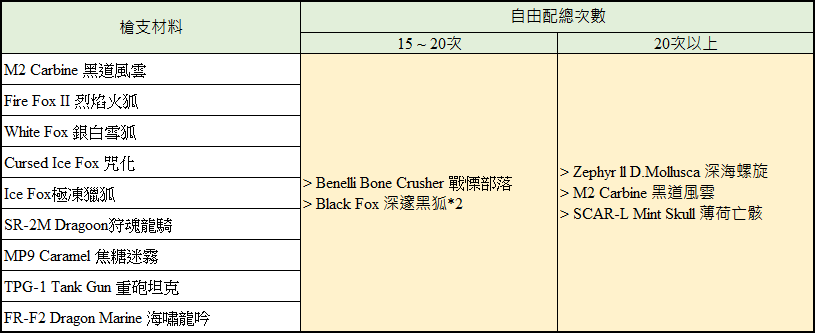 3.執行2把以上時選擇1把槍枝完成自由配算做一次紀錄。