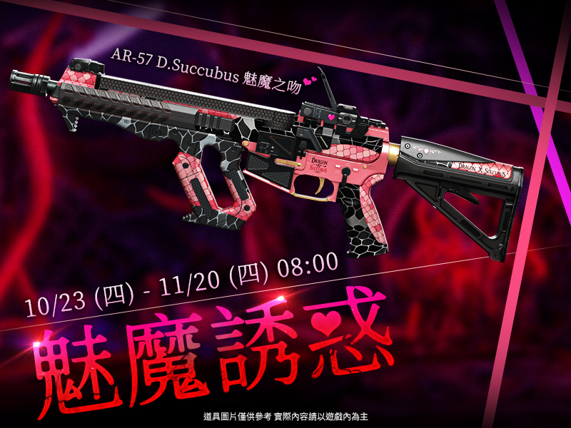※ 抽售期間抽中【AR-57 D.Succubus 魅魔之吻】,可獲得【D.Succubus稱號】、【D.Succubus名片】 (每個帳號限領一次)