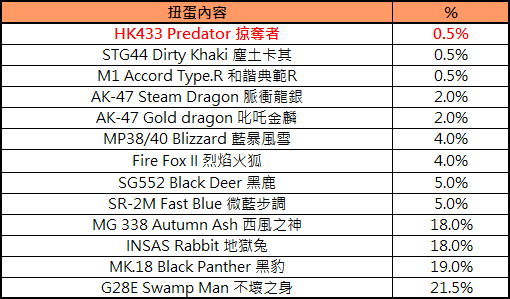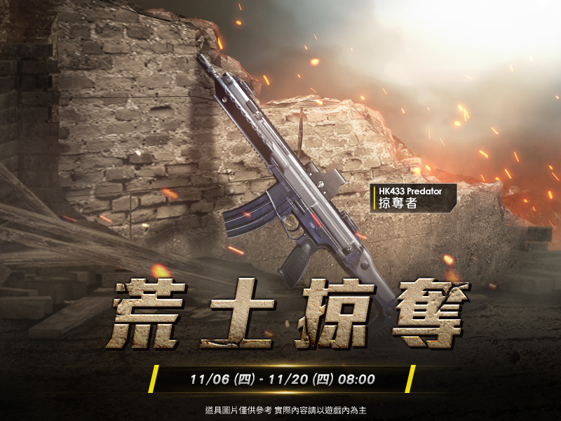※ 抽售期間抽中[HK433 Predator 掠奪者],可獲得[Katana Predator 掠奪者太刀],每個帳號限領一次。 (每個帳號限領一次)