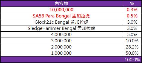 ●2026年3月更新後,SA58 Para Bengal 孟加拉虎、Glock21c Bengal 孟加拉虎 可在黑市交易。