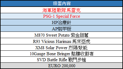 ※ 抽中「海軍陸戰隊馬雷克」即可額外獲得 M4A1 Special Force(每個帳號限領一次)。