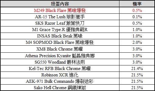 ※ M249 Black Flare 黑暗爆發,無法進行槍枝改造與槍鏘自由配