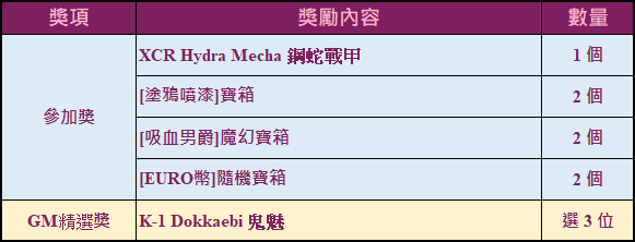 3. 活動結束後,GM將會從參與活動的玩家中挑選出3位寫的最優秀的玩家,贈送[K-1 Dokkaebi 鬼魅]。