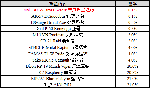 ►轉蛋內容: