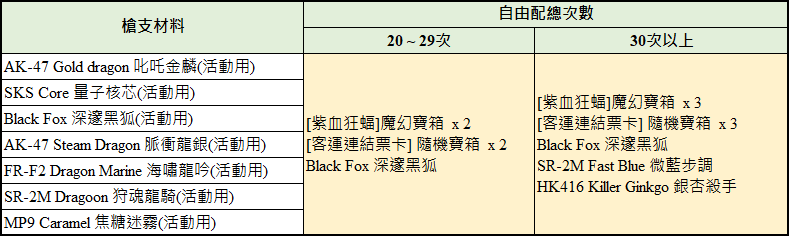 2. 執行多把槍枝合成時,最終「選擇結果並完成槍鏘自由配」的行為計算為 1 次紀錄。