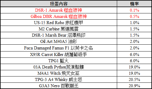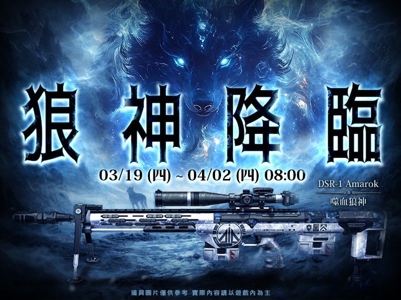 ※ 抽中「DSR-1 Amarok 噬血狼神」即可額外獲得 【DSR-1 Amarok 噬血狼神 名片】、【DSR-1 Amarok 噬血狼神 稱號】(每個帳號限領一次)。