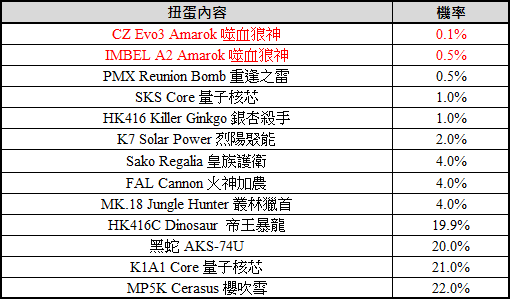 ※ 抽中「CZ Evo3 Amarok 噬血狼神」即可額外獲得 【CZ Evo3 Amarok 名片】、【CZ Evo3 Amarok 稱號】(每個帳號限領一次)。