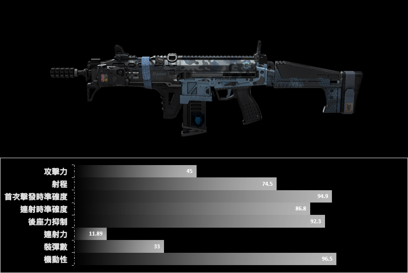 ※ 玩家每次擊殺,準確度增加15%,準確度最多增加45%