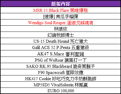 ※ 抽中「Wendigo Soul Reaper 溫迪戈弒魂者」即可額外獲得 【MTE-224 Wendigo 惡靈溫迪戈】、【Wendigo Axe 溫迪戈戰斧】(每個帳號限領一次)。