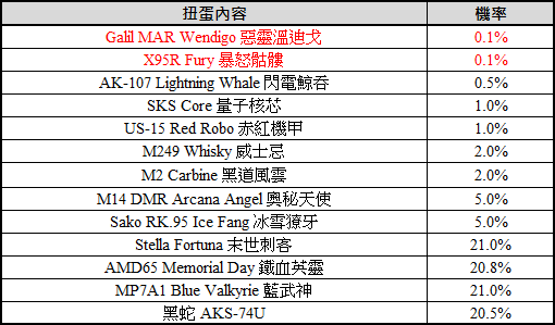 ►轉蛋內容: