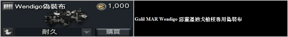 ※ Galil MAR Wendigo 惡靈溫迪戈,無法進行槍枝改造與槍鏘自由配