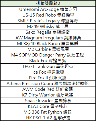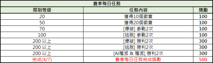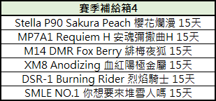 - 本次賽季時間:10/23(四)維護後 - 11/20(四) 08:00