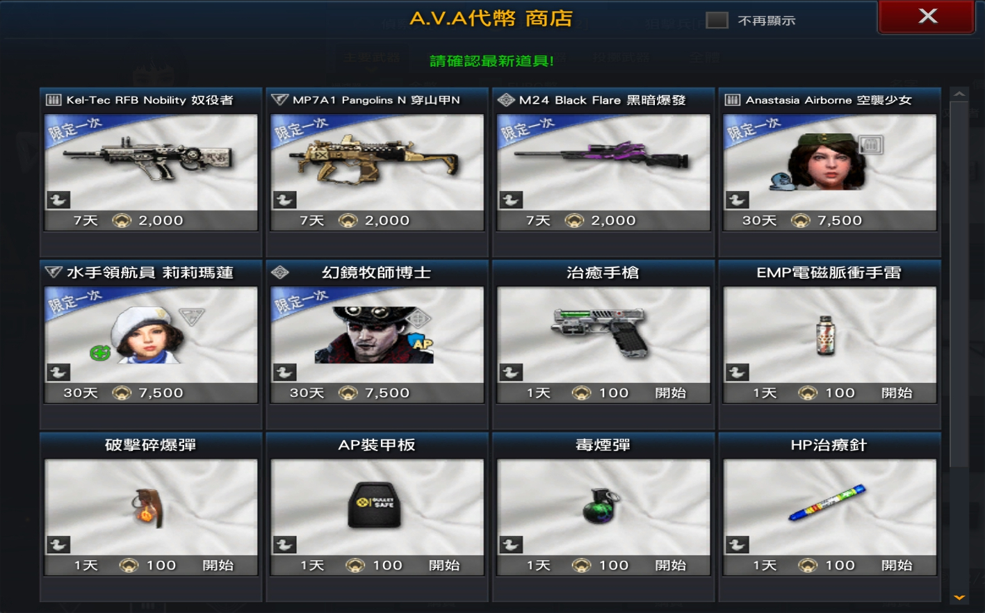 ※請在新賽季開始前使用所有AVA COIN,以避免造成不必要的損失