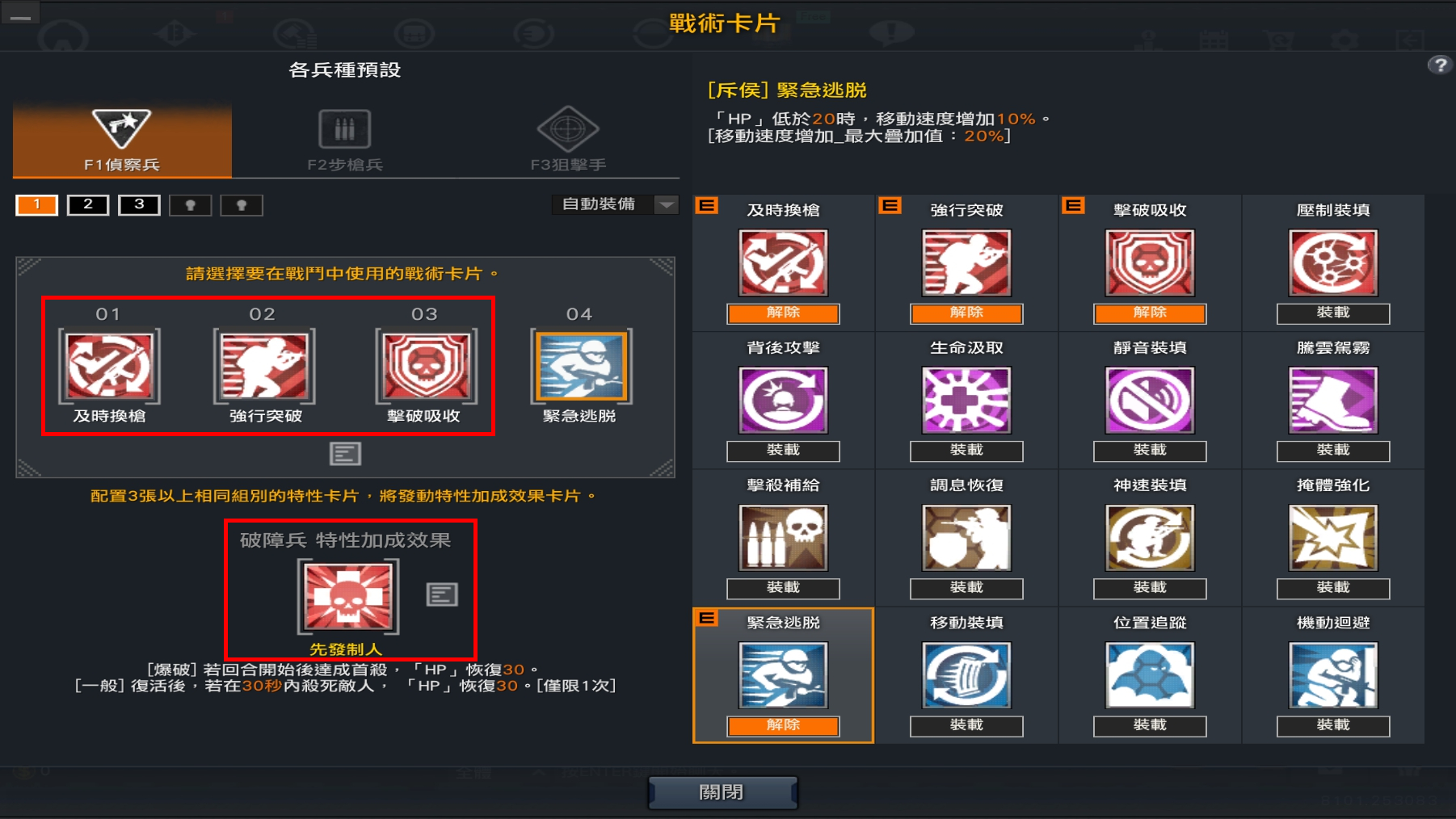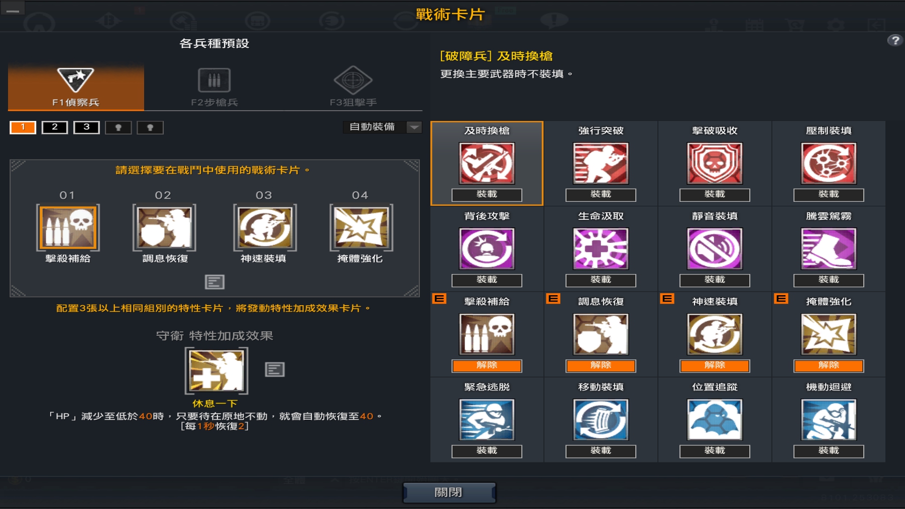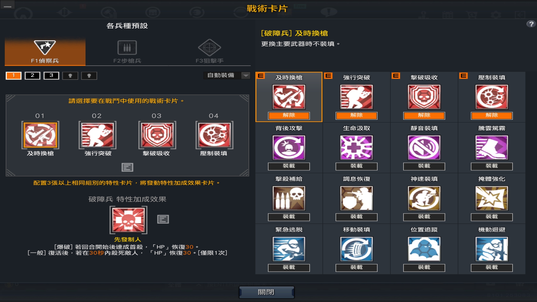 透過戰術卡介面,您可以更改戰術卡設定、兵種與主武器。