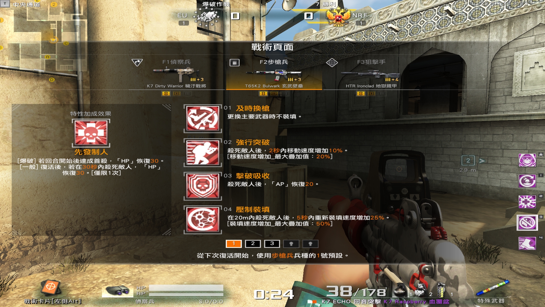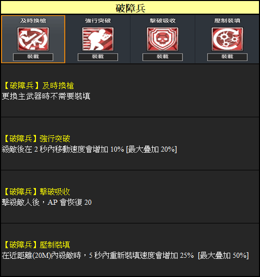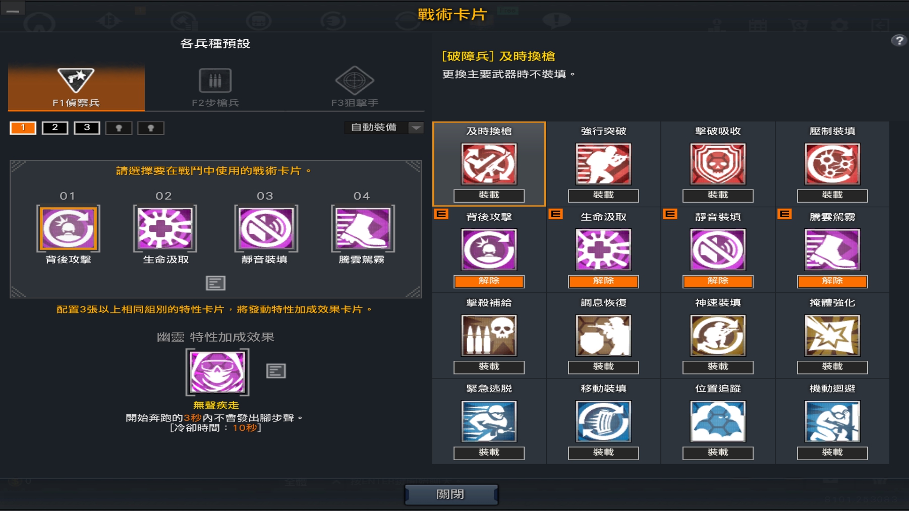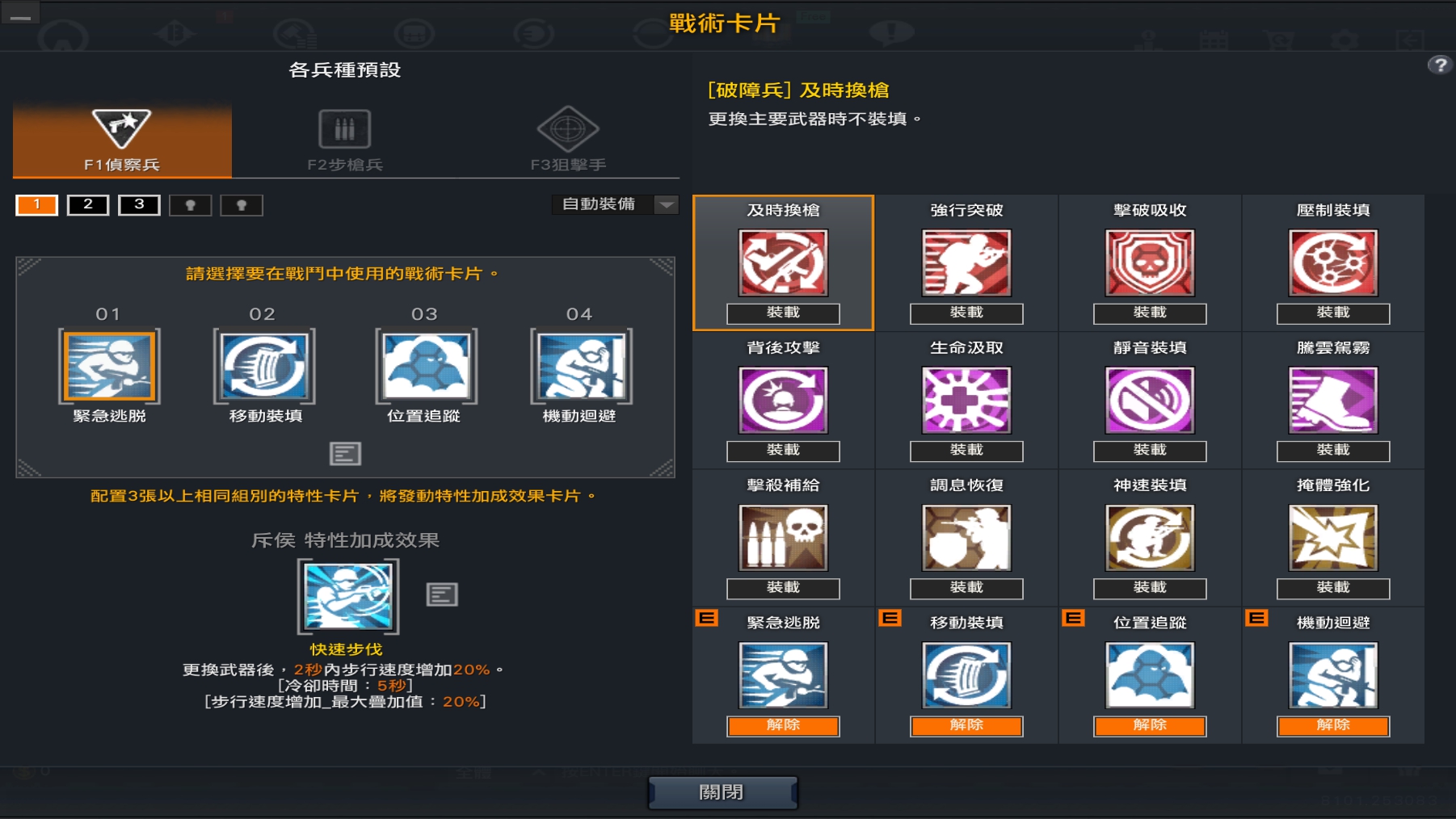 透過戰術卡介面,您可以更改戰術卡設定、兵種與主武器。