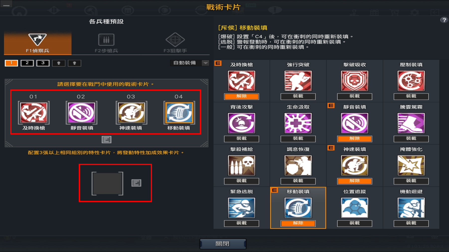 - 一頁可裝備 4 張戰術卡片。