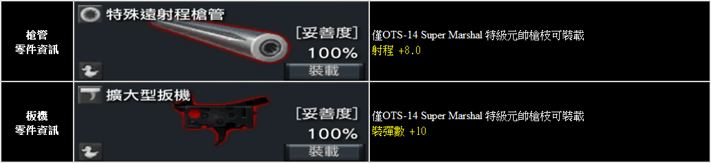 ※ OTS-14 Super Marshal 特級元帥,無法進行槍枝改造與槍鏘自由配