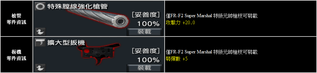 ※ FR-F2 Super Marshal 特級元帥,無法進行槍枝改造與槍鏘自由配