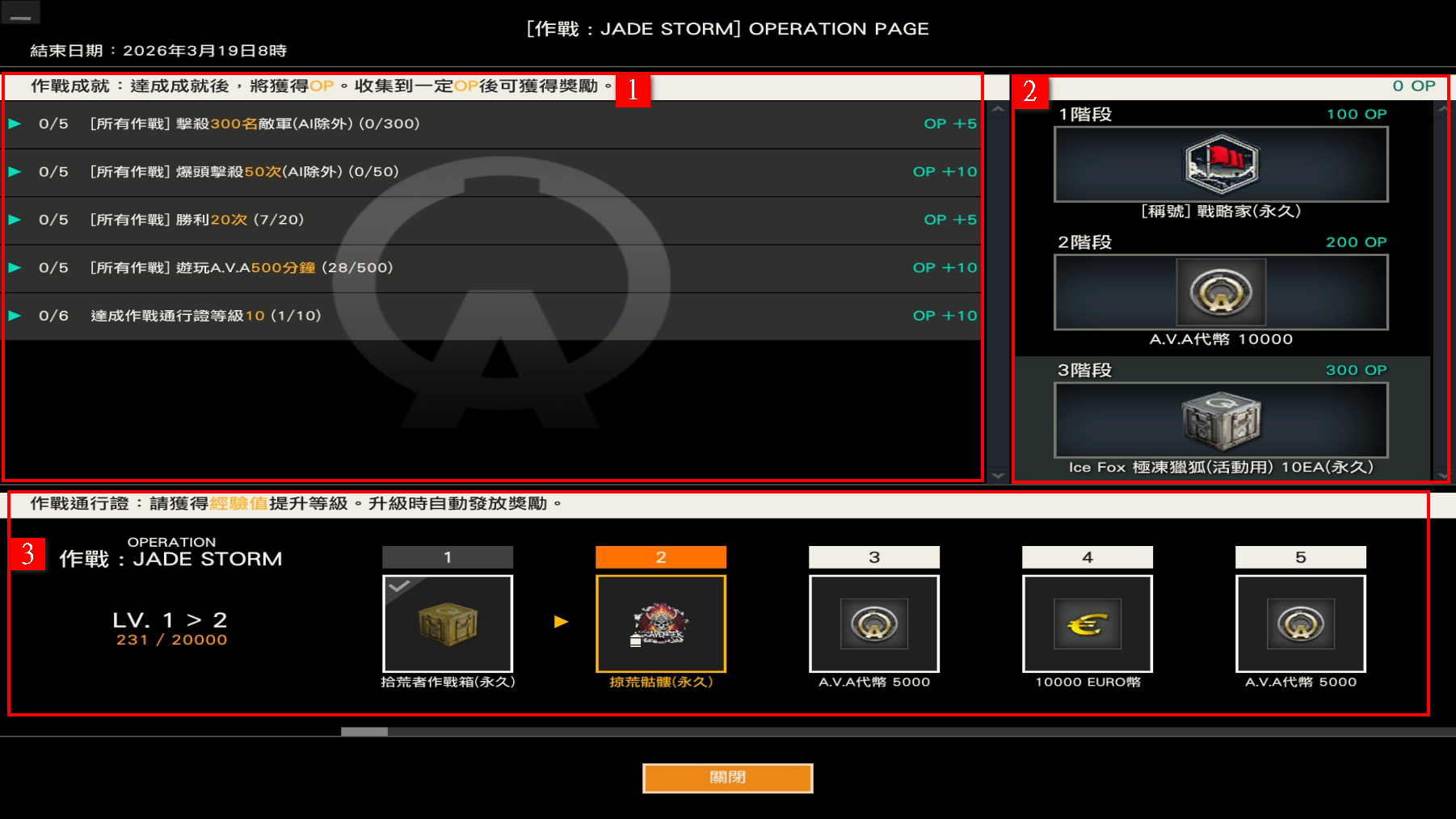 - 可以透過作戰成就獲得的 OP 來兌換第 1 階段至第 3 階段的獎勵