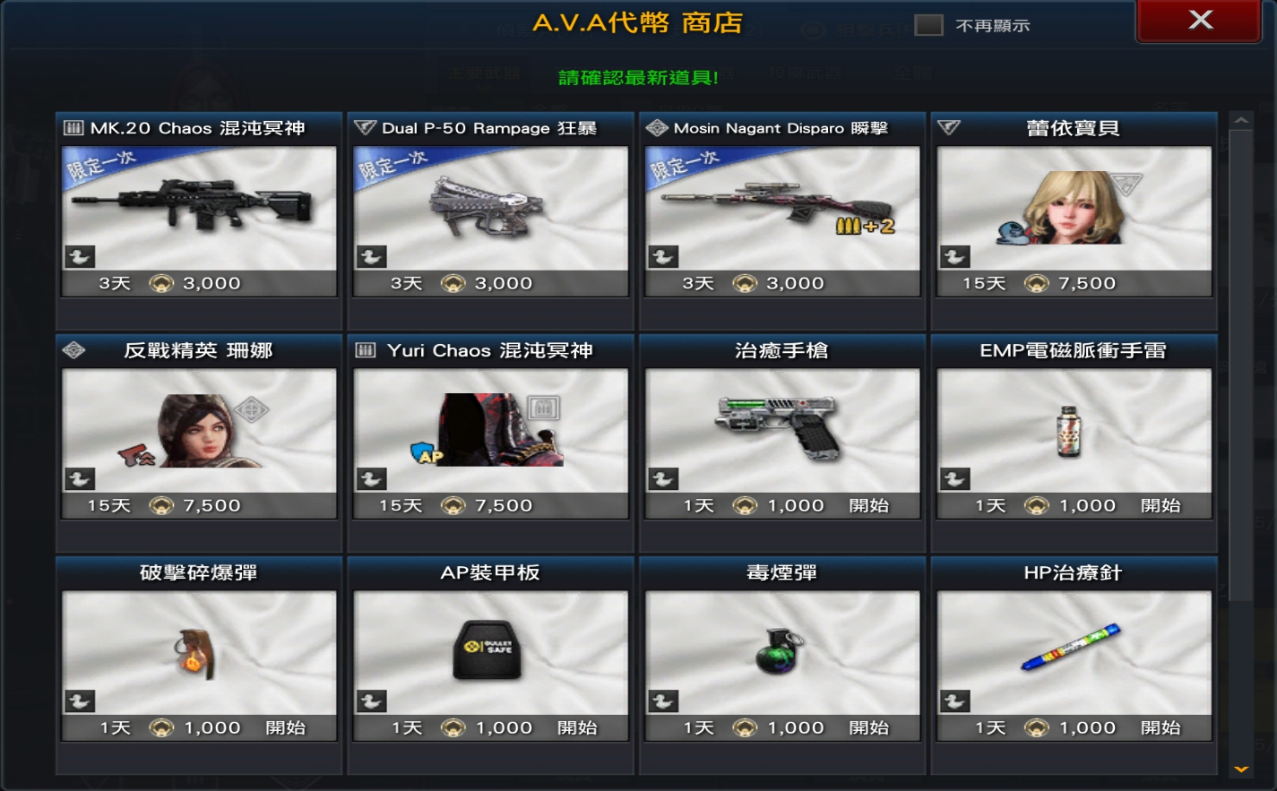 - 【AVA代幣商店】內容及價格調整